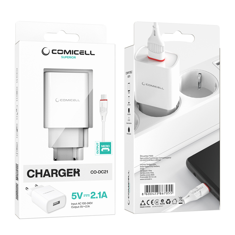 Kucni punjac Comicell Superior CO-DC21 2.1A Micro USB beli