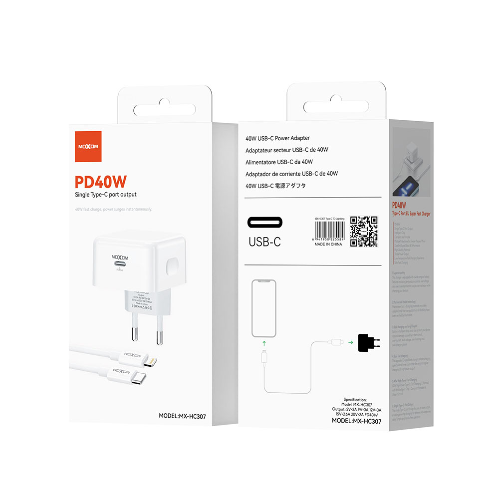 Kucni punjac MOXOM MX-HC307 40W Type C na Lightning beli