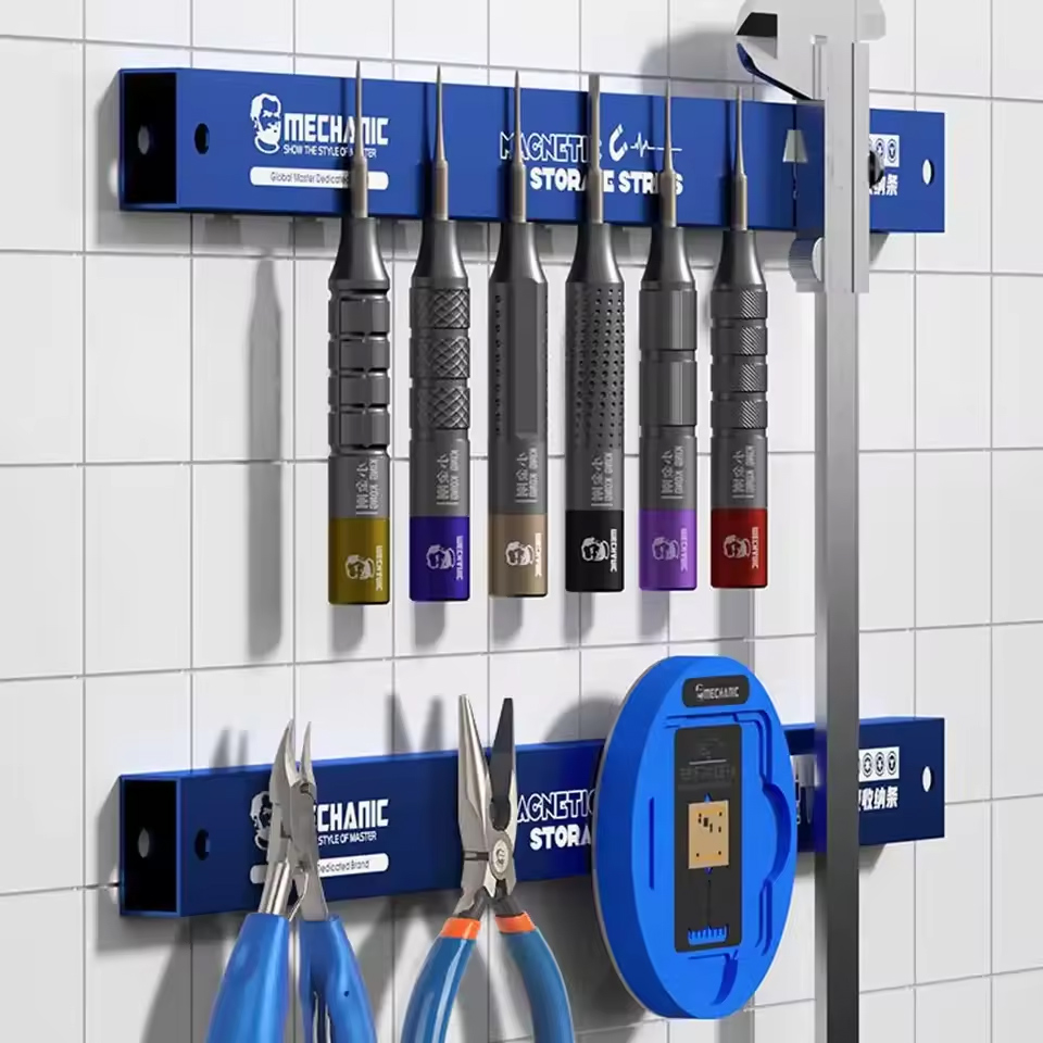 MECHANIC MAG 25 magnetna traka omogućava da vam alati budu uvek na dohvat ruke i pregledno raspoređeni. Savršena je za radionice, garaže, servisne stolove i prodavnice za popravku telefona. Zahvaljujući mogućnosti podešavanja dužine, lako se prilagođava svakom radnom prostoru i potrebama za organizaciju.