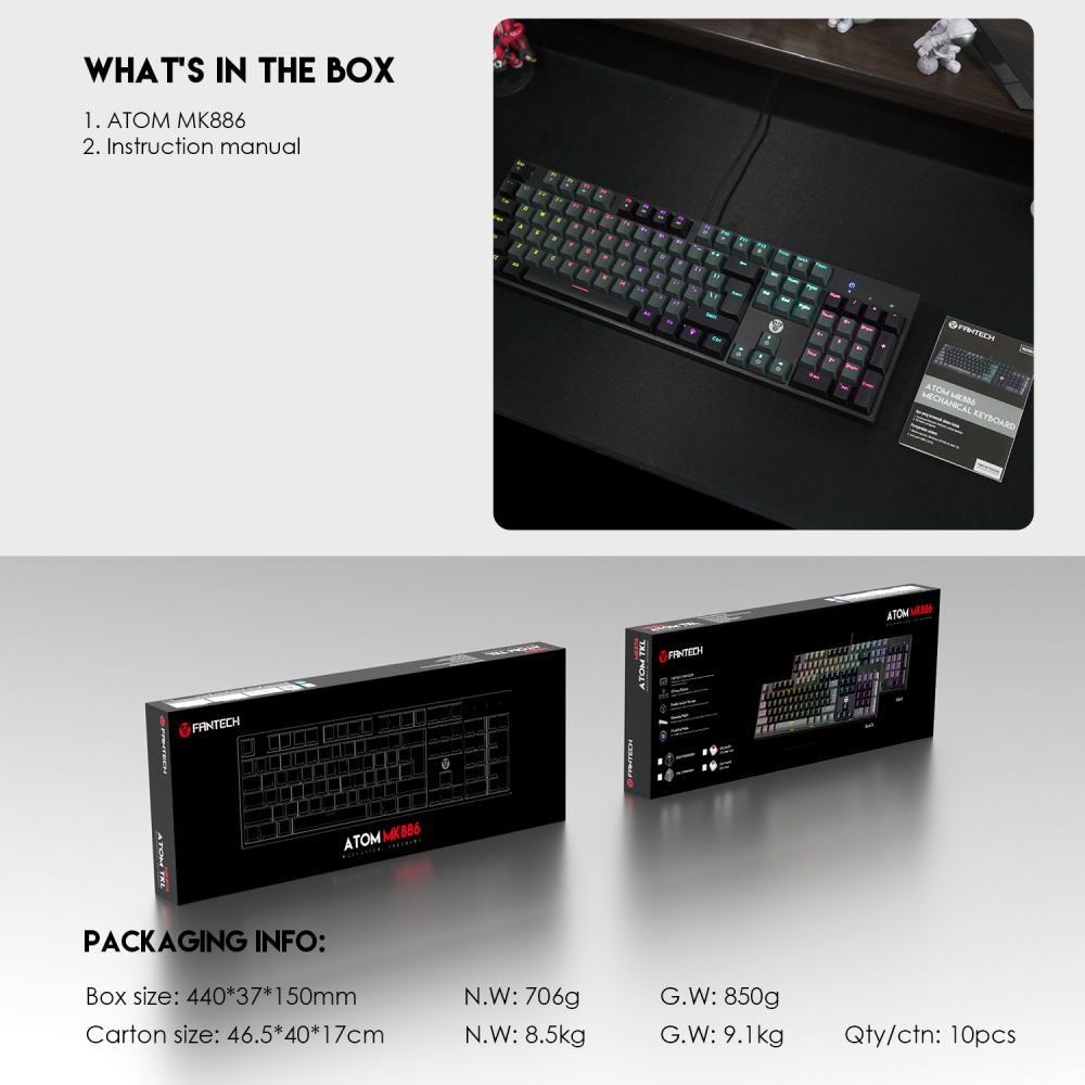 Tastatura Mehanicka Gaming Fantech MK886 RGB Atom crna (Blue switch)