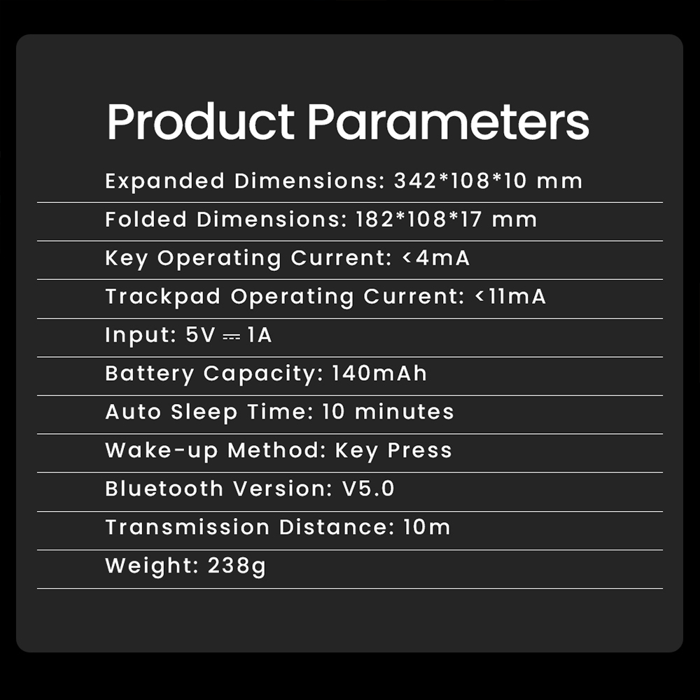 • Dimenzije (rasklopljena): 342 × 108 × 10 mm
