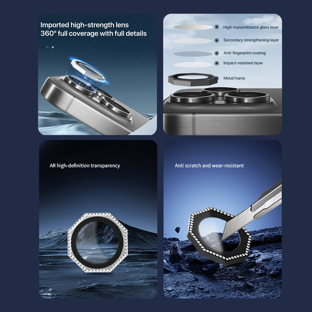 Zastita za kameru OCTAGON DIAMOND za iPhone 16 Pro (6.3)/16 Pro Max (6.9) ljubicasta